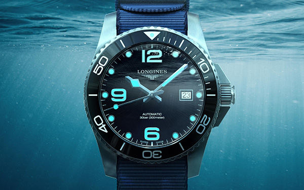 在您的腕表沉浸在水中之前,请确定表冠已拧紧,以防水渗入浪琴内部。